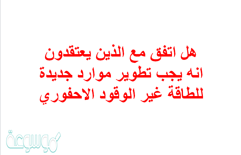 وضح هل اتفق مع الذين يعتقدون انه يجب تطوير موارد جديدة للطاقة غير الوقود الاحفوري