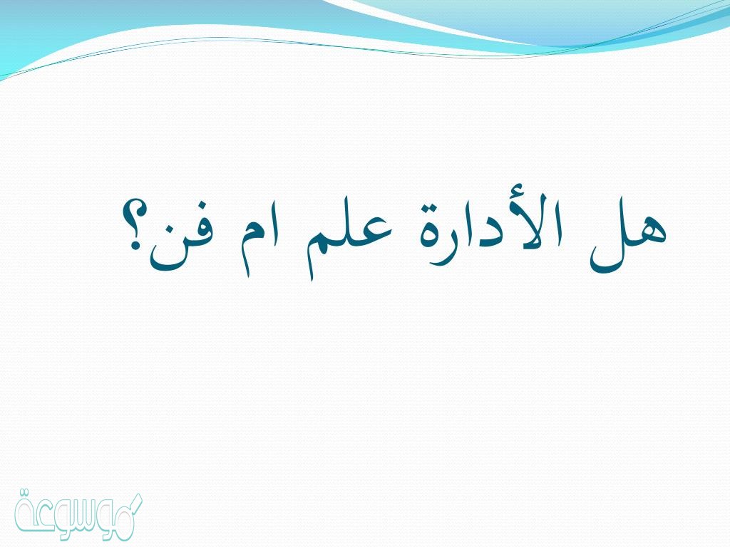 - هل الادارة علم ام فن: الادارة هي علم وفن ومهنة وتُعتبر من أرقى المهن وأسماها.
