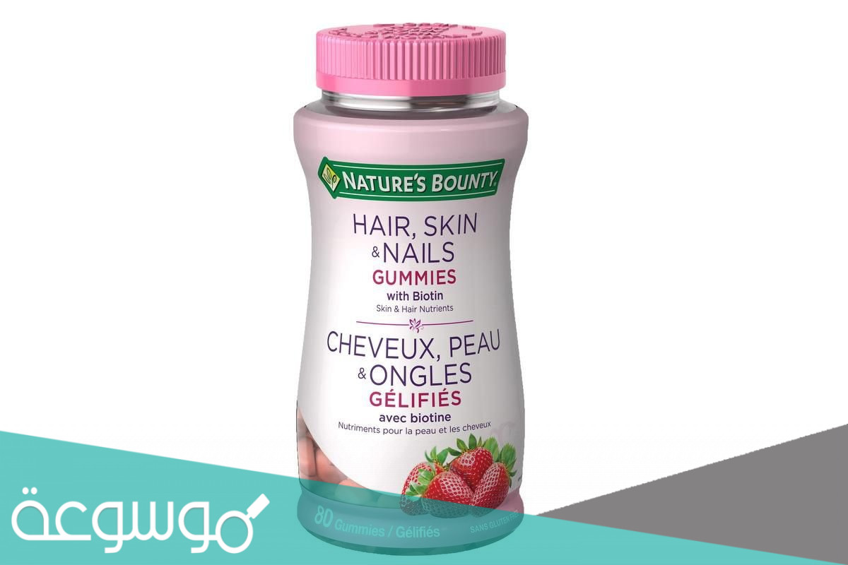 - وبالمثل ، يتكون Beauty Gummies من البيوتين الذي يستخدم في تكوين وإطالة وجمال الشعر ، حيث أنه أحد المكونات التي تساهم في نمو وتحفيز بصيلات الشعر.
