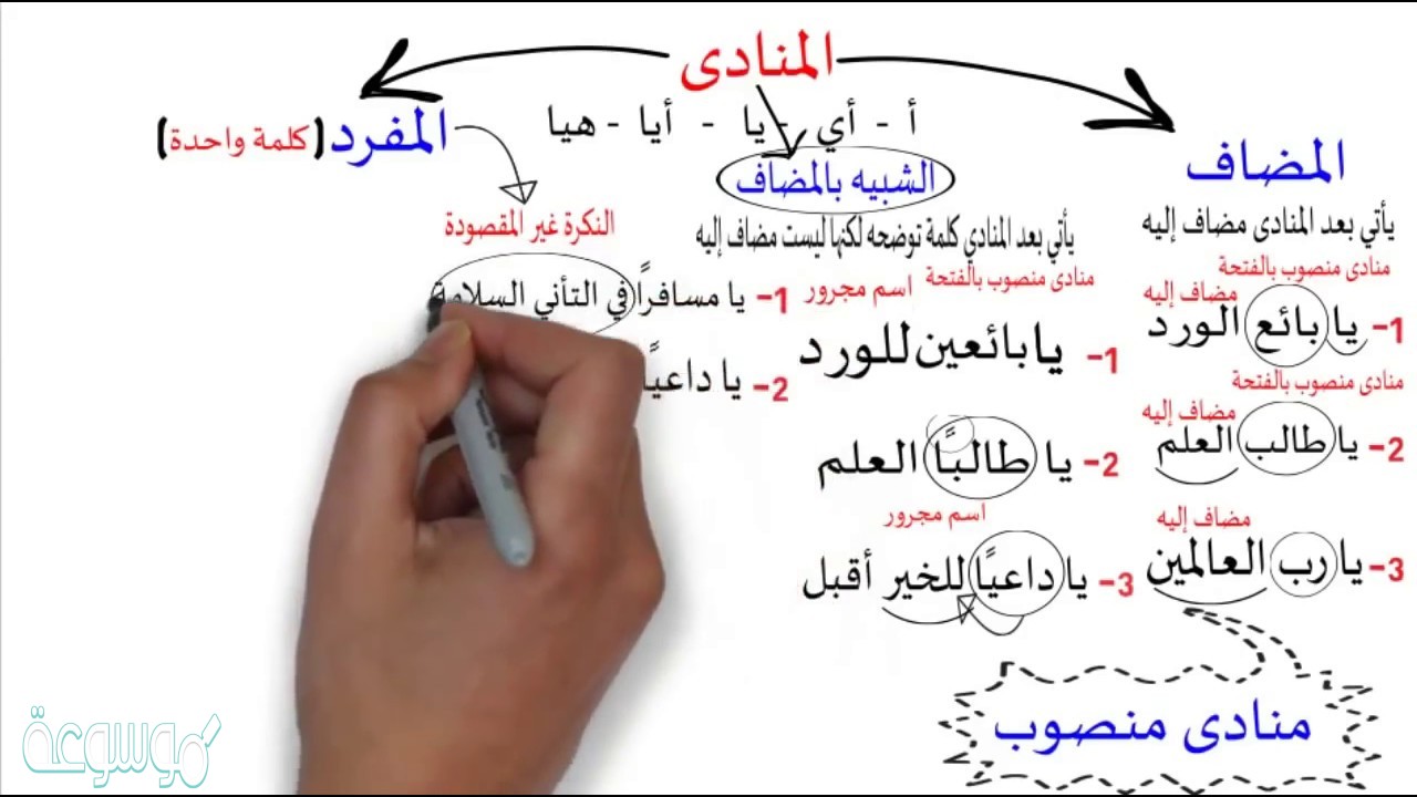 يتصل بالمُنادى عدّة من الكلمات والحروف التي تضاف إليه من أجل التوصل إلى المقصد الصحيح الذي يُريده المُنادي، وحيثُ يتم اعراب المُنادى مُفردًا علمًا أو نكرة مقصودة وهو مبني على ما يُرفع به في محل نصب، وكذلك إذا كان المُنادى نكرة غير مقصودة أو يكون مُضافًا أو شبيهًا فهو منصوب، ويتضمن النداء أسلوب يبدأ الشخص فيه بالمُناداة يا، أو حسب الموقع والحديث في الجملة التي يقصدها الشخص، وحلّ السؤال الذي يُوضح نوع المُنادى في يا مستعجلا تمهل نوع المنادى.