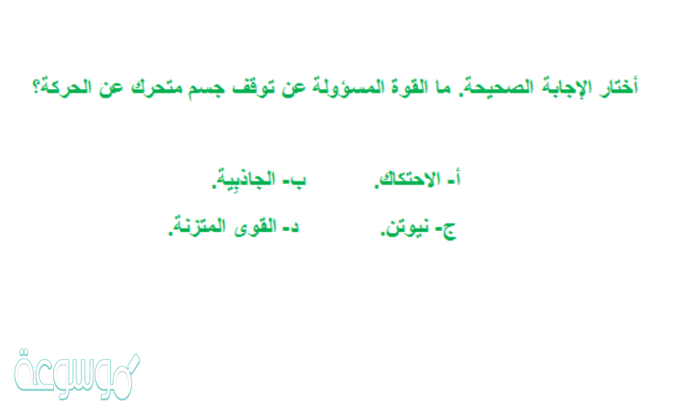 حل سؤال ما القوة المسؤولة عن توقف جسم متحرك عن الحركة
