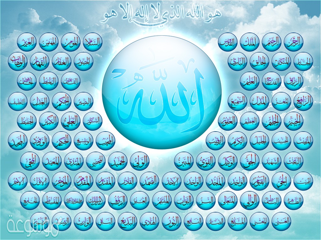 ثبن عن النبي محمد صلى الله عليه وسلم، أن لله عز وجل تسعة وتسعين إسما، فهي الأسماء التي اختص بها الله لنفسه، وقام نبينا محمد بإثباتها وتعليم معانيها للصحابة الكرام، لأن حفظها وتعلمها والعمل بها والتأمل والتفكر بكل اسم من تلك الأسماء، عبادة من العبادات التي ننال عليها الأجر والثواب من الله سبحانه، بيده ملكوت كل شيء وهو على كل شيء قدير، فهي الأسماء التي لها دلالات إيمانية مثلى، دالة على الكمال والجمال، فهي الأعظم والأقدس، علينا أن نمجدها ونثني عليها في دعائنا واستغفرانا، فهي الدالة على كرم الله وجوده وتوحيد لا إله إلا هو جل جلاله.